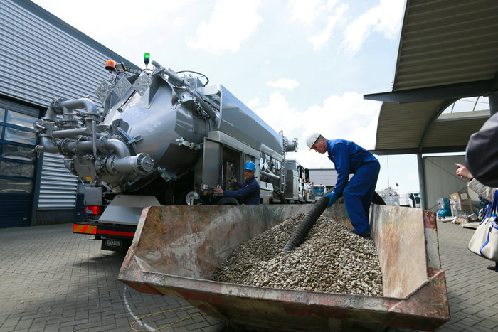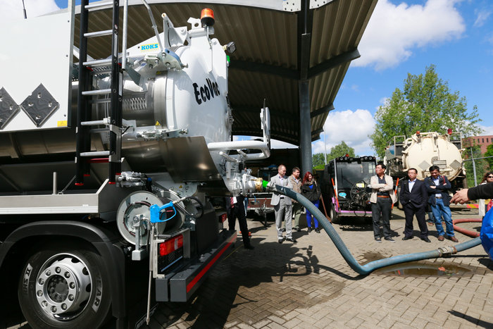位于荷蘭阿爾克馬爾的KOKS集團公司是一家家族企業(yè),主要生產(chǎn)用于收集、運輸工業(yè)液態(tài)或固體廢料及裝填催化劑用真空抽吸裝置。考察團參觀了其組裝和檢修車間,并觀摩真空抽吸槽車操作功能演示。在現(xiàn)場,一整車碎石,很短的時間就被完成抽吸。如需清理丁二烯罐等含有毒氣體的容器,此類抽吸裝置就更能發(fā)揮其安全、高效性能。此外,傳統(tǒng)作業(yè)中工業(yè)廢料的處理需經(jīng)過收集、儲存及運輸?shù)葞讉€環(huán)節(jié),而這些環(huán)節(jié)都可由一輛真空抽吸槽車一條龍完成,避免作業(yè)銜接時廢物泄漏或暴露對環(huán)境的二次污染。