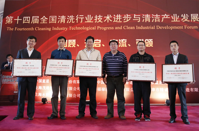 在我國工業清洗行業三十年的發展歷程中,有一些團隊堅守清洗行業工業清洗行業二十年以上,在業內享有較高知名度;在行業科技進步、技術推廣應用等方面有突出成績,在工業清洗某一專業領域占有主導地位,為行業的發展做出突出貢獻;注重技術研發與科技進步,擁有一定數量的成果、專利,并得到較廣泛的工業化推廣或應用;在市場開拓和團隊管理方面具有鮮明特點,在行業和用戶中有較高的評價;具有中型及以上企業規模,有較為充裕的服務能力和專業資源。日前,在第十四屆全國清洗行業技術進步與清潔產業發展論壇中,隆重頒發了“中國工業清洗30年杰出貢獻企業”獎牌,獲獎企業的名單為:
