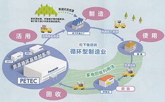 坐落在兵庫縣加東市的松下環(huán)保技術中心株式會社(簡稱 PETEC)是松下獨資建立的廢舊家電處理工廠,可回收處理冰箱、洗衣機、空調和電視機四類產品,在成立的十年當中,PETEC一共處理了超過800萬臺,回收鐵、銅、鋁約 15 萬噸。為促進循環(huán)型生產,PETEC 從商品中回收資源, 商品再利用,變身為新的商品,實現(xiàn)從商品到商品的目標,并且不浪費資源,回收后重新在商品中利用,真正實現(xiàn)了垃圾的零排放。