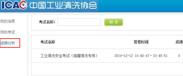 考試人員點(diǎn)擊頁面左側(cè)成績分析后,可以看到例如考試名稱、考試時間、及格情況等信息。