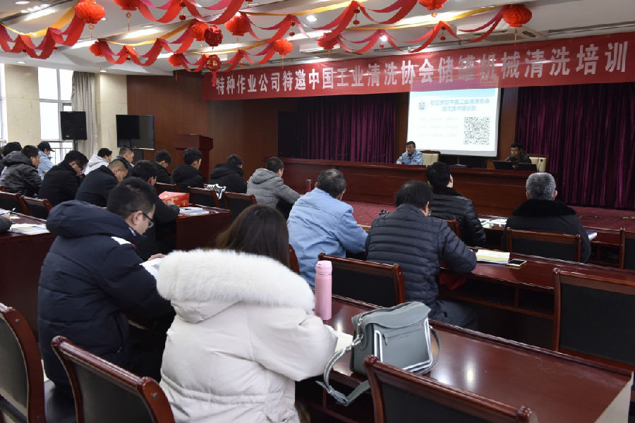 開班前,中石化儲運公司安處長對本次學員提出了要求,一定要特別重視、認真對待本次培訓,將學到的本領應用到現場當中去,警惕各種風險、隱患的源頭并能很好地控制。本次培訓特邀中國工業清洗協會秘書處工作人員和儲罐清洗駐會專家前來授課,授課內容從油罐機械清洗技術的前期準備、施工驗收、總結提高、系統維護四方面展開,系統而全面的為參培人員提供了儲罐清洗的專業技術大餐。