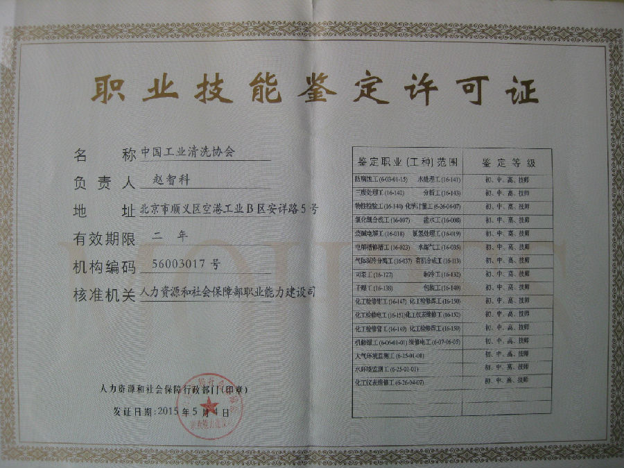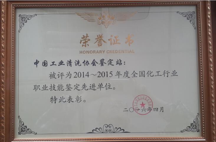 ? ?化工行業(yè)特有工種職業(yè)技能鑒定站于2003年3月10日設(shè)立,機(jī)構(gòu)編碼:56003017,是經(jīng)“國家勞動和社會保障部”批準(zhǔn)設(shè)立的,受化工行業(yè)職業(yè)技能鑒定指導(dǎo)中心業(yè)務(wù)指導(dǎo),是國內(nèi)唯一鑒定“清洗腐蝕工”的職業(yè)技能鑒定站。同時也從事“水生產(chǎn)處理工”、“工業(yè)廢水處理工”、“分析工”、“物性檢驗(yàn)工”“化工檢修管工”“化工檢修鉗工”等29個工種的職業(yè)技能鑒定。
